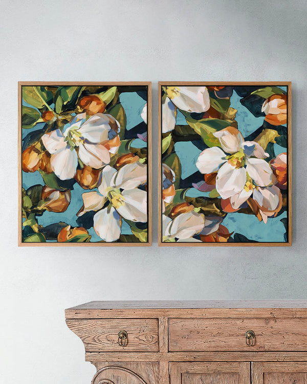Blossom Aqua Fine Art Print on Canvas - Rectangular Duo - Fresh Floral Wall Art | Bowerbird Collections